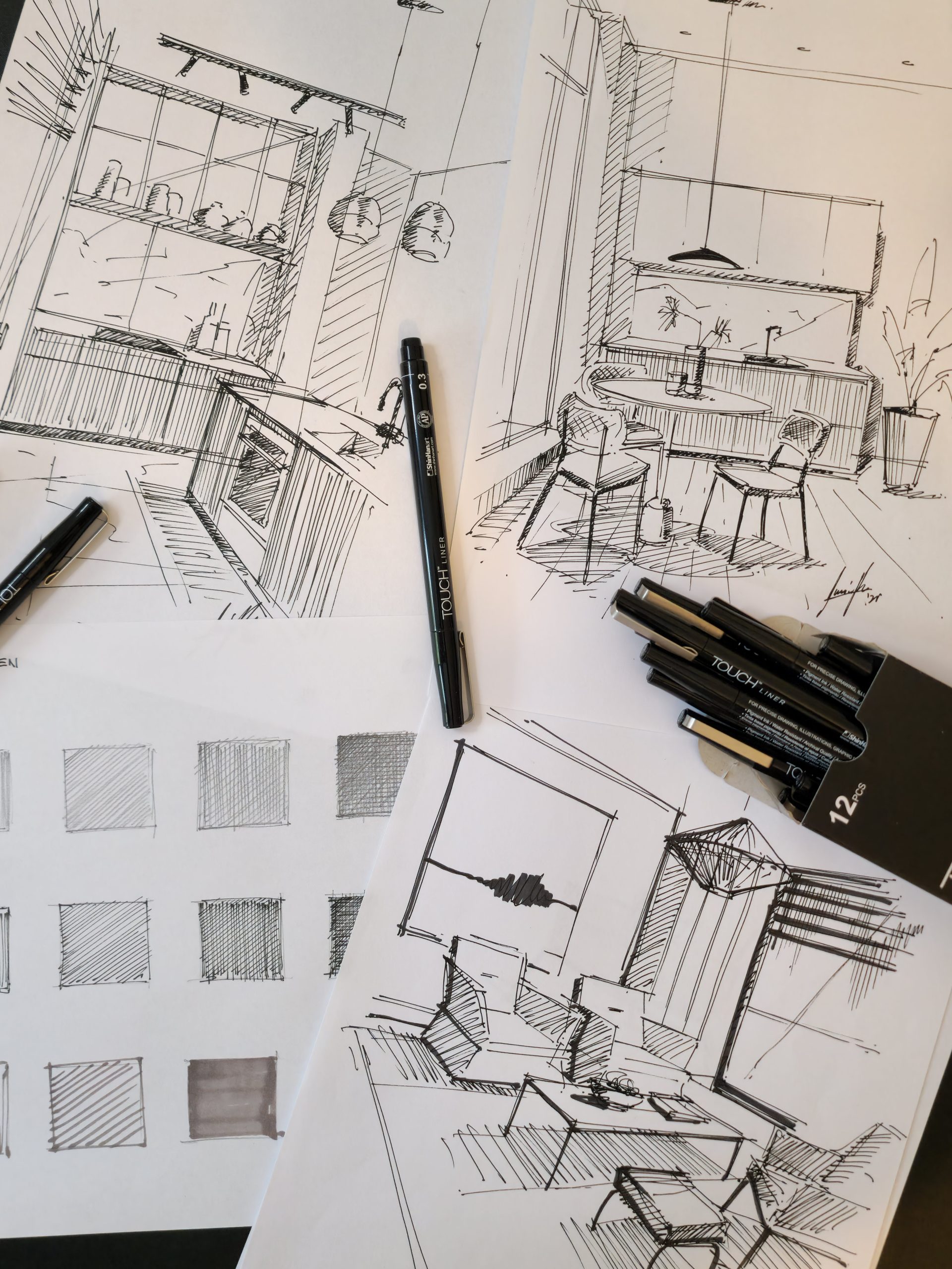 Ich verbinde gestalterisches Denken mit einem tiefen Verständnis für Innenräume. So entstehen Skizzen, die nicht nur ästhetisch sind, sondern Raumwirkung, Proportionen und Materialität klar vermitteln.