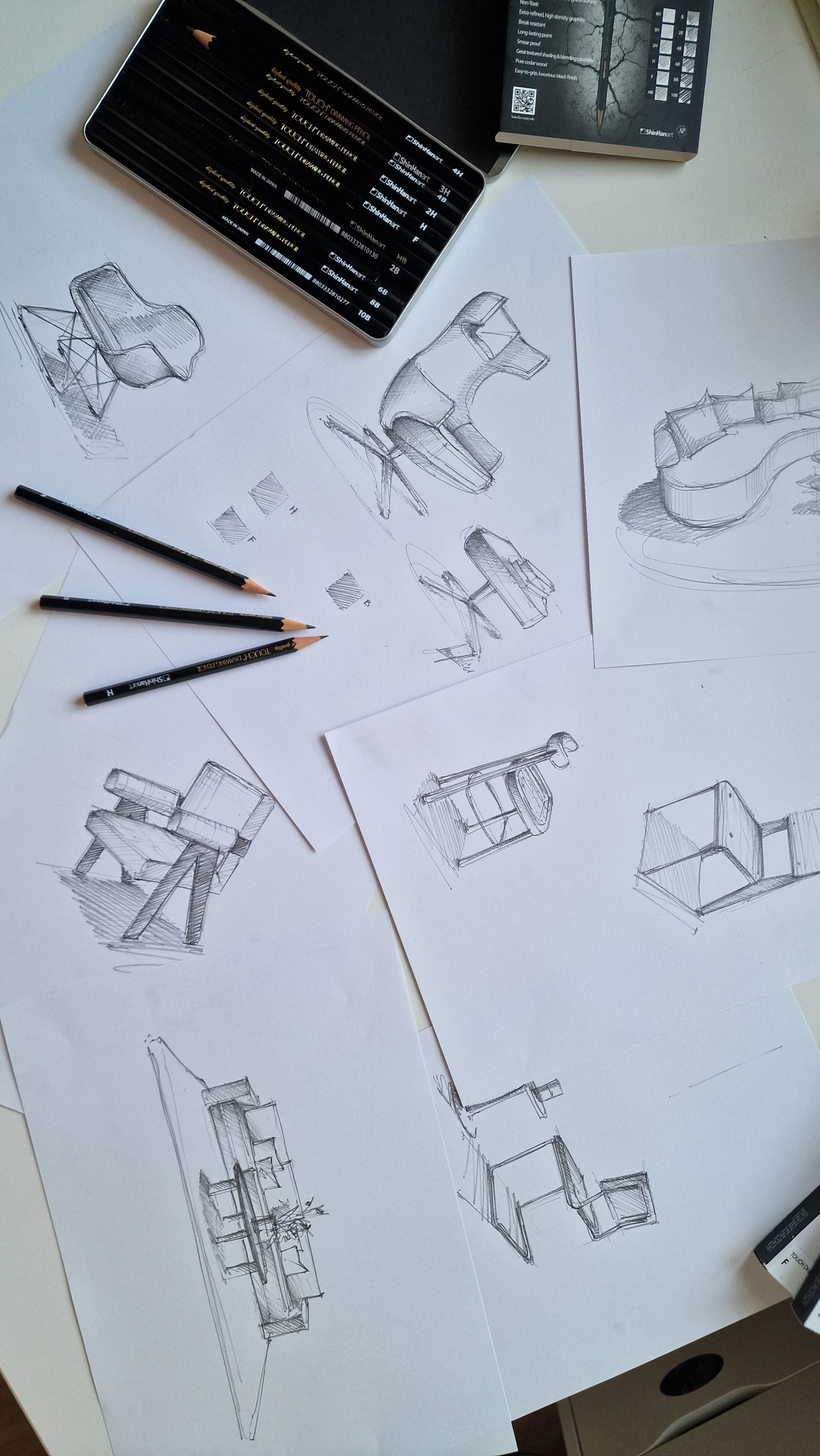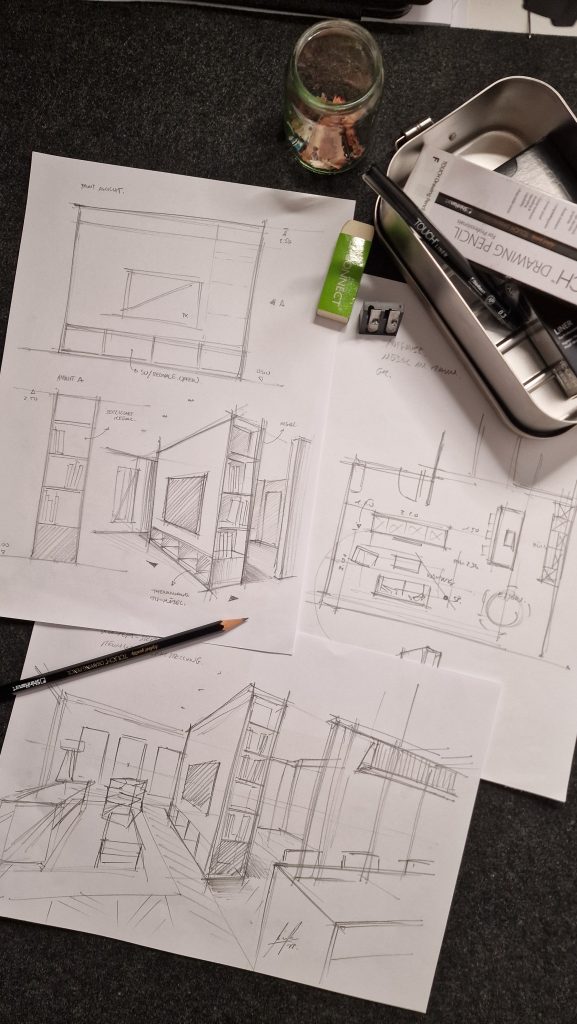 A curated selection of high-quality, hand-drawn works for concepts, projects, and studies – executed in pencil and liner techniques.
