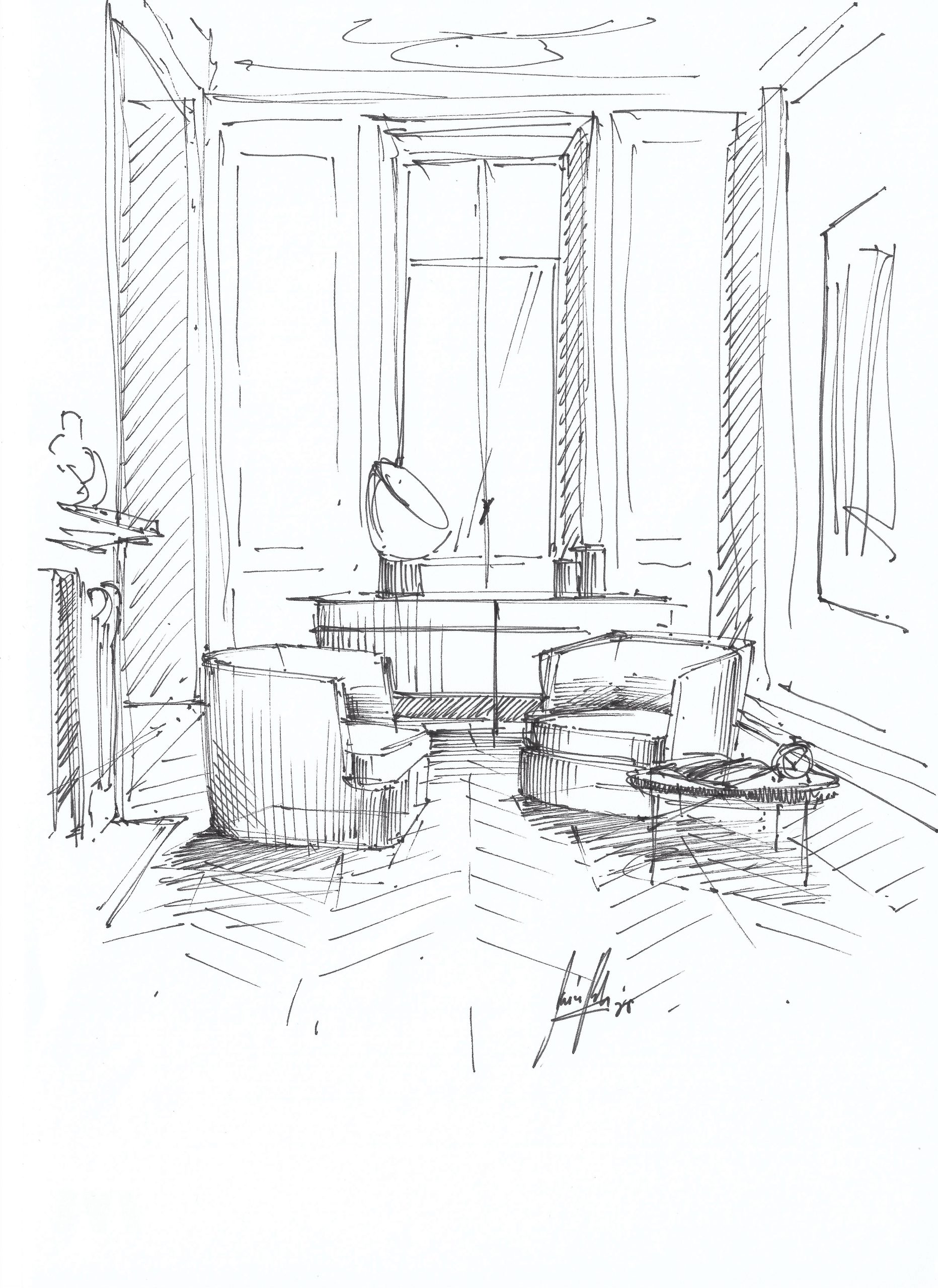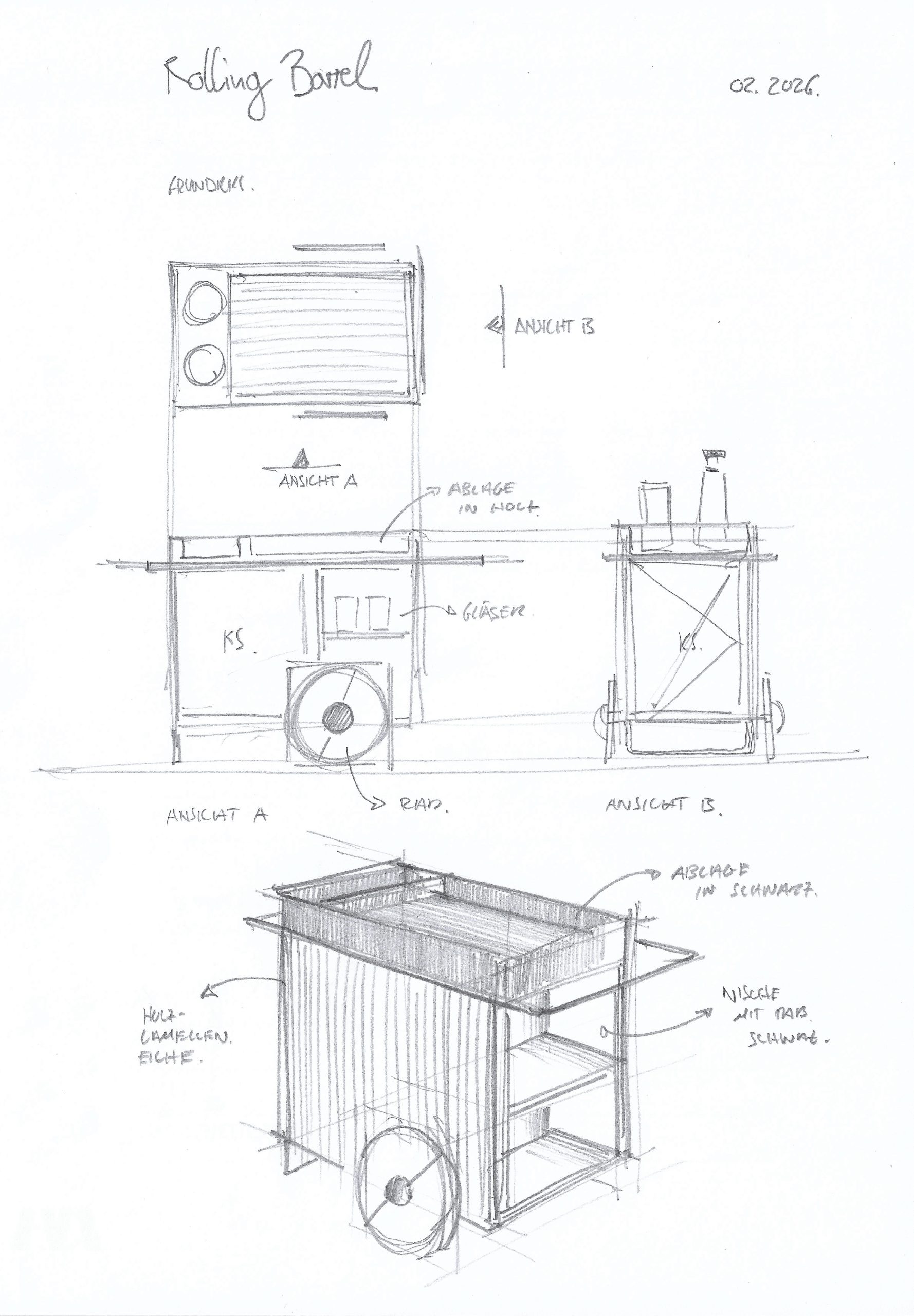 The sketches are study drawings and concept sketches created to understand spatial situations and to provide an initial insight.